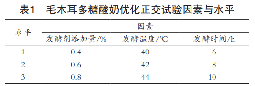 毛木耳多糖屬于酸性多糖,具有提高機體免疫 力、抗癌抑癌、抗氧化衰老、降低血糖、調節心臟功 能等功效,因此毛木耳多糖的綜合利用對毛木耳多糖 生物活性研究和產品開發具有重要意義。酸奶是以鮮牛奶為主要原料,利用嗜熱鏈球菌和 保加利亞乳桿菌等益生微生物,以益生菌發酵的方式 得到發酵型乳制品。發酵酸奶易于消化吸收、提高食 欲、促進腸道蠕動、有利于治療便秘。營養物質豐 富,還可以增加人體免疫力,間接起到美白養護的效 果,因此發酵型酸奶受到大量消費者的喜愛。