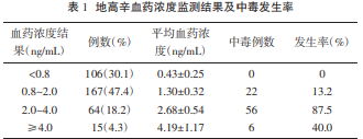 2.1 地高辛血藥濃度監測結果及中毒發生率